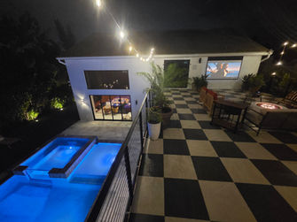 The backyard continues the adventure with a saltwater pool and jacuzzi, a cozy fire pit, and a Weber grill ready for group barbecues. Families and friends can spread out across a kids playground, trampoline, climbing wall, and mini golf putting green, while the game room keeps the fun going indoors with ping pong, foosball, and arcade machines. Every corner of the Oasis was created to invite laughter, play, and connection.